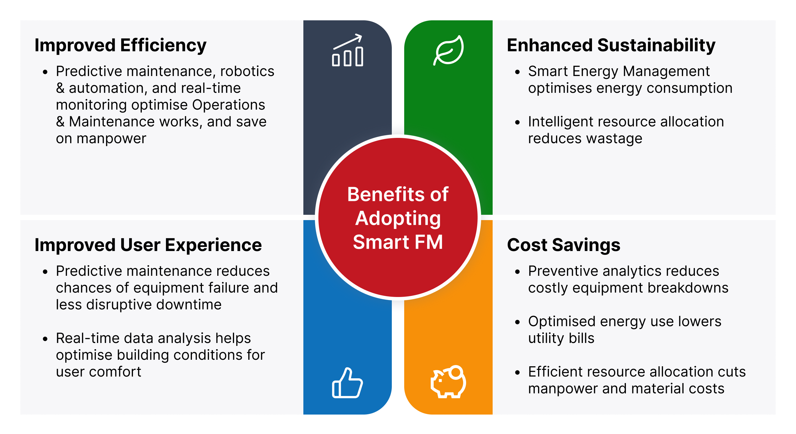 Adopting Smart FM can enable Built Environment (BE) firms to enhance their operational efficiency, sustainability measures, and reduce their costs.