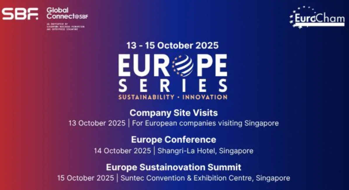 Co-organised by the Singapore Business Federation (SBF) and the European Chamber of Commerce (EuroCham), the Europe Series’ theme will be on “Sustainability, Innovation.” Designed to foster deeper Europe-Singapore economic engagement, the programme features three key components: