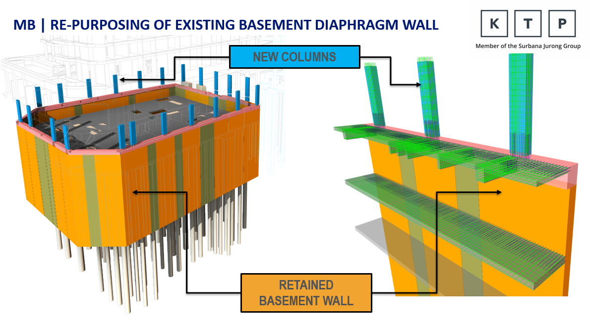 Illustration A: Re-purposing of existing basement diaphragm wall capacity