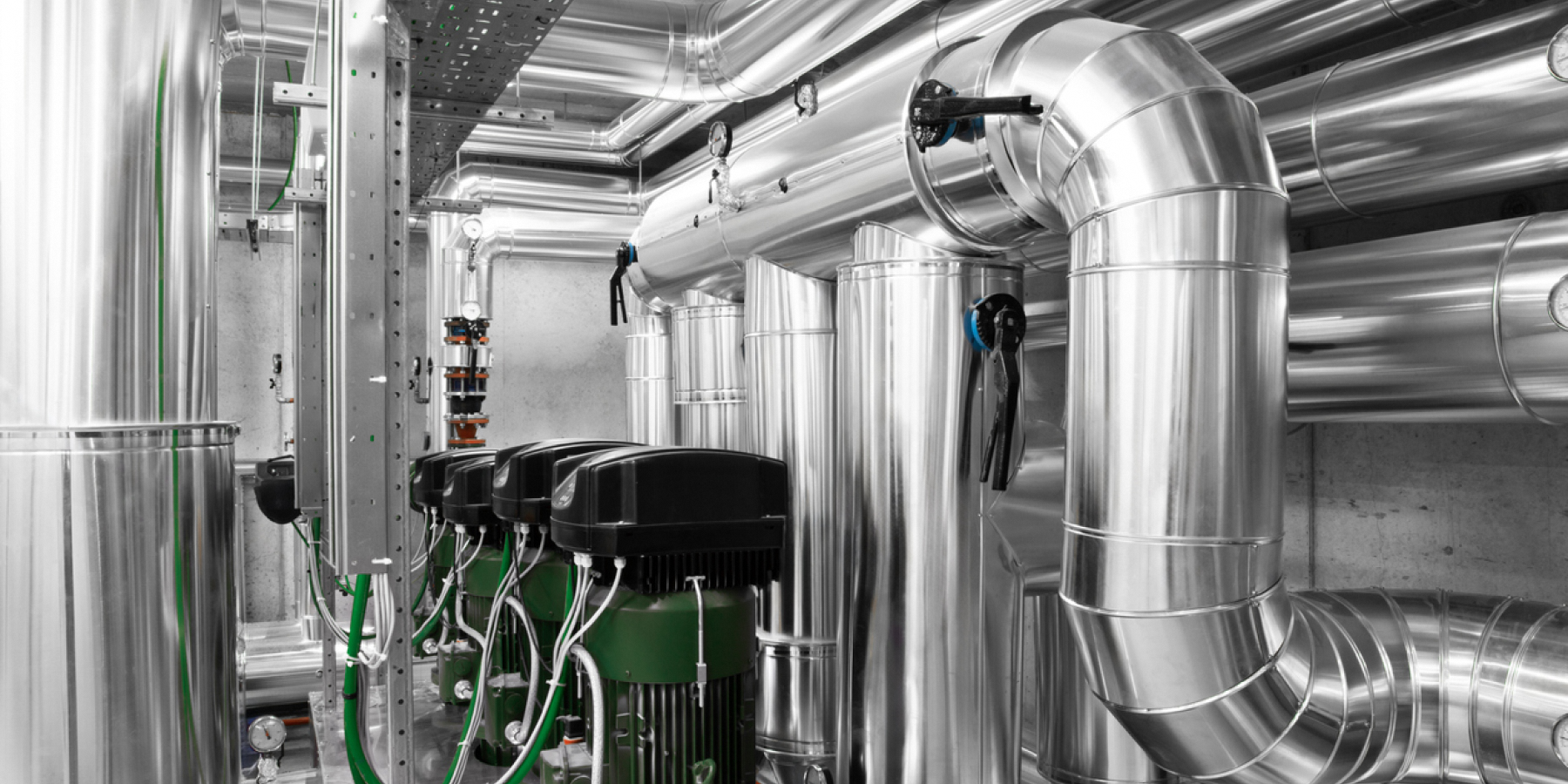Engineers are inspecting a large building or industrial facility's cooling system for the air conditioning on rooftop building.